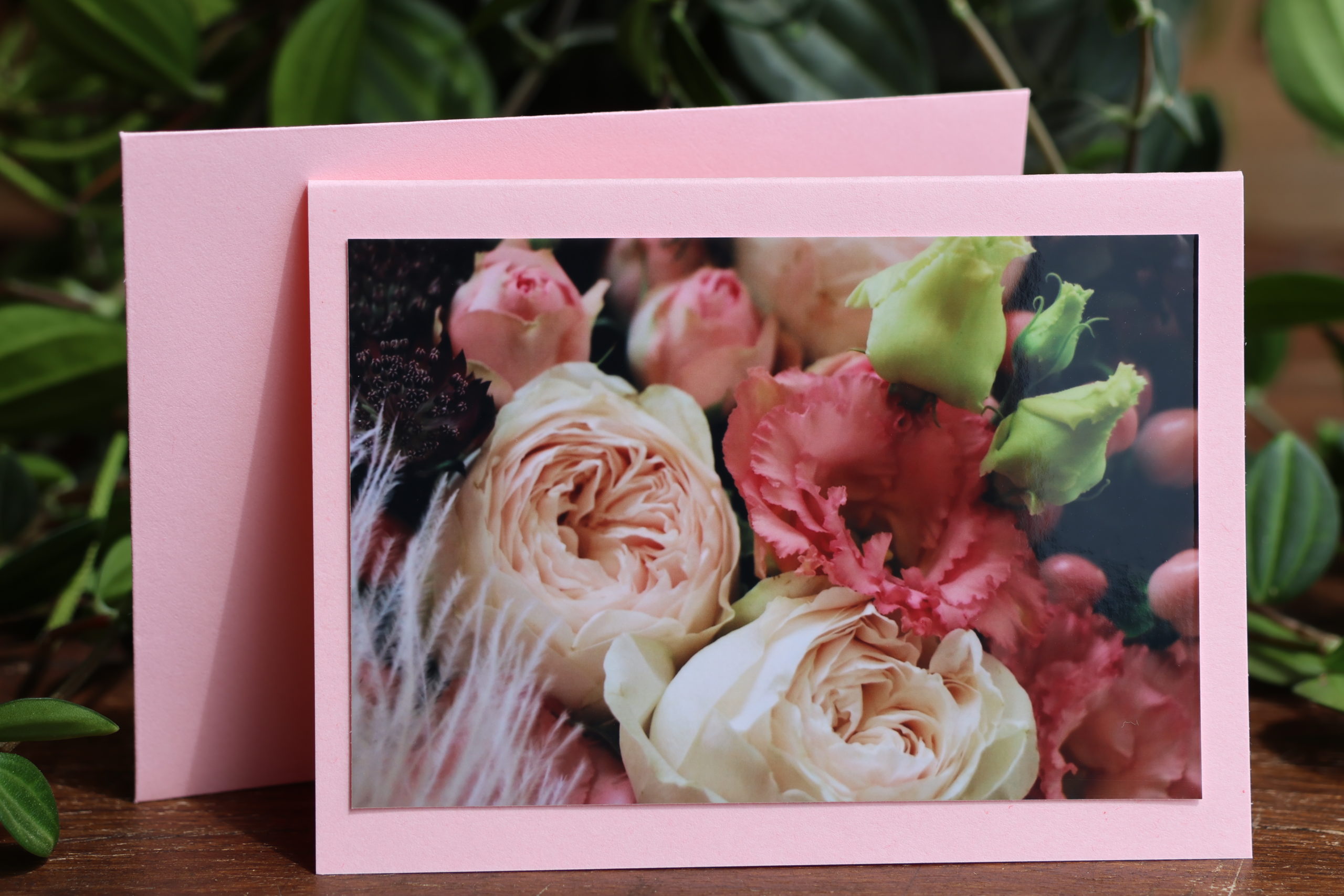 Sans Texte, Rose, Plume, Lisianthus, couleur de la carte rose